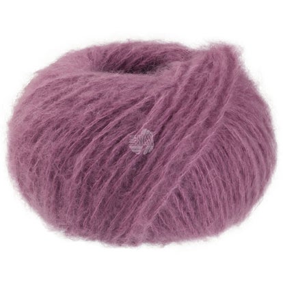 Lana Grossa Mohair Di Gio is een super licht garen met een zachte glans. 55 % super kid mohair en 45 % merino. naald 7-8 12 steken en 16 naalden = 10 x 10 cm. 50 gram = 85 meter en voor een trui maat 38-40 heb je 8 bol nodig
