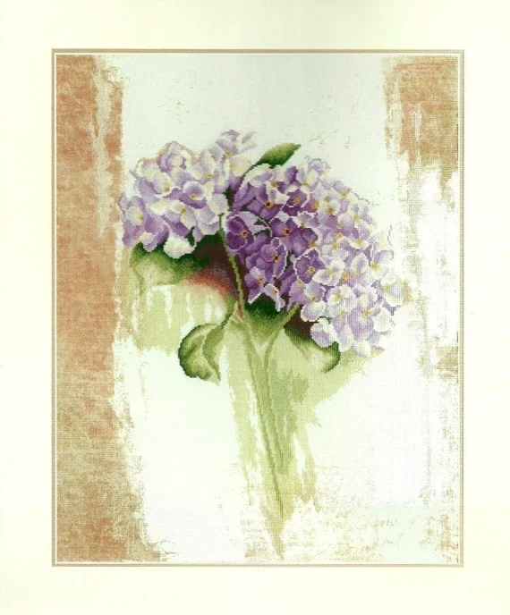 Borduurpakket Lanarte Blue Hydranga 39 x 49 cm. incl. plaatselijk geverde stof 100 % linnen 12 draads, voldoende borduurgaren, naald en telpatroon.