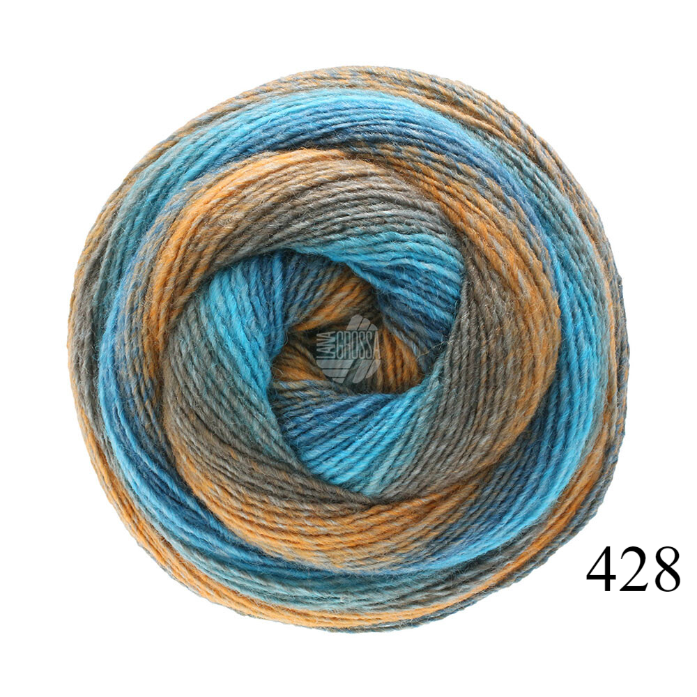 Gomitolo Versione van Lana Grossa heeft een leuk langzaam kleurverloop in prachtige kleurcombinaties. Doordat het uit 60 % wol en 40 % acryl bestaat kun je er prachige niet al te dikke omslagdoeken en sjaals van maken. Ook geschikt voor bijv. een trui maat 38/40 heb je 2 bol nodig als je tricotsteek gebruikt. Naald 4-4½ en een bol van 200 gram = 700 m.