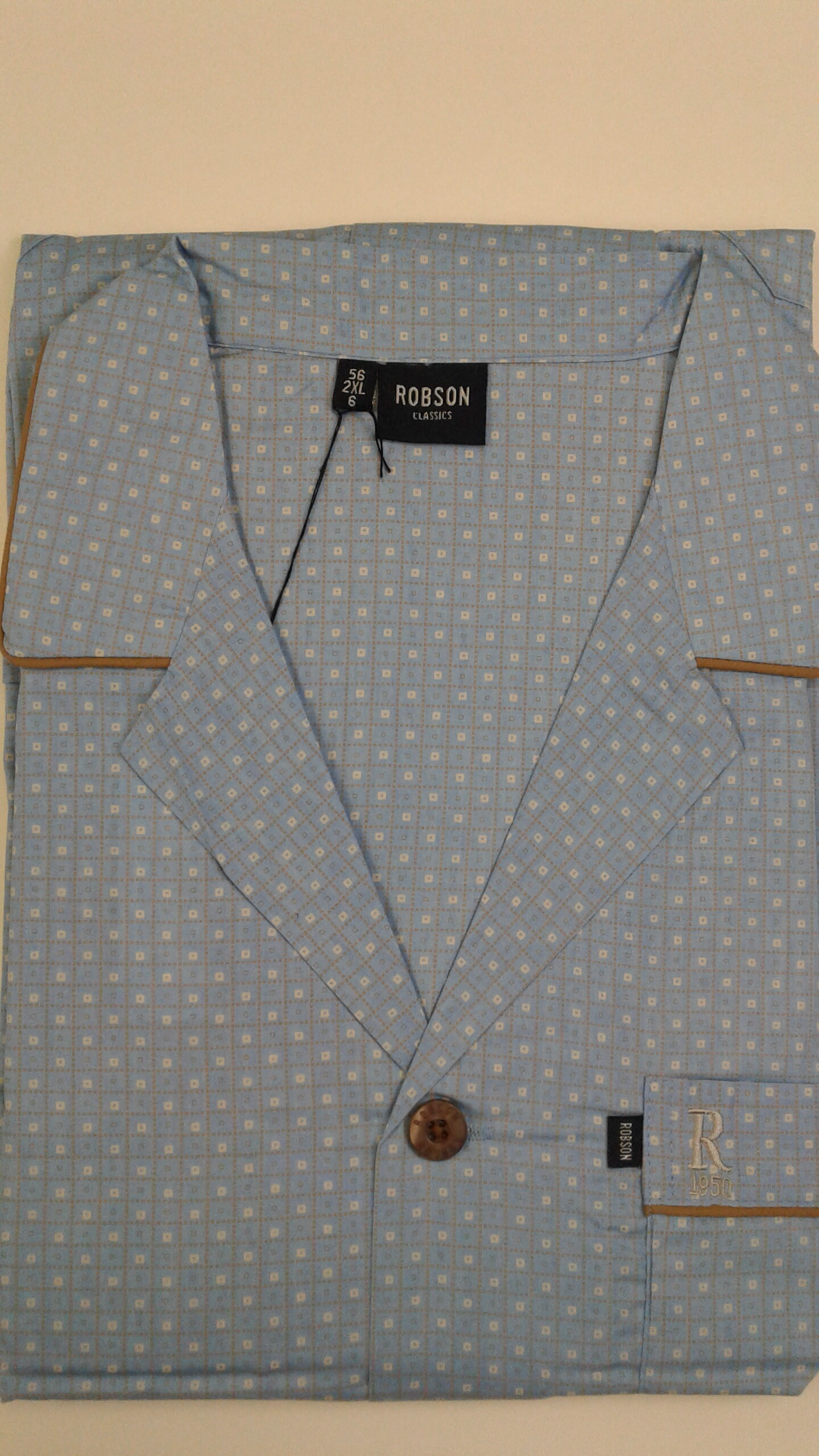 Heren pyjama Robson, 100 % katoenen poplin, jasje met kraag, knoopsluiting en 3 zakken, broek met split en knoopsluiting op elastische boord.