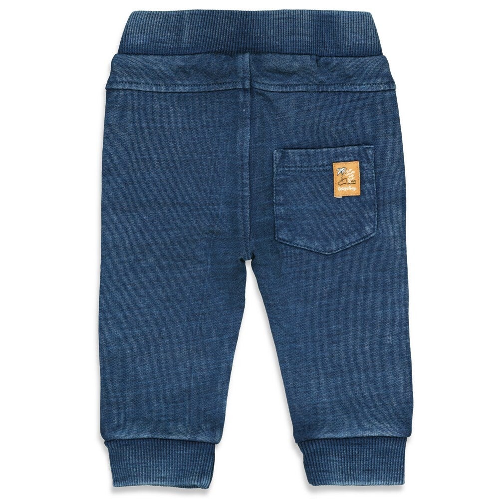 Feetje tricot broek 100 % biologische katoen, zakken op voor en achterpand, elastische boord met koord, boordjes aan de pijpen, jeans optiek