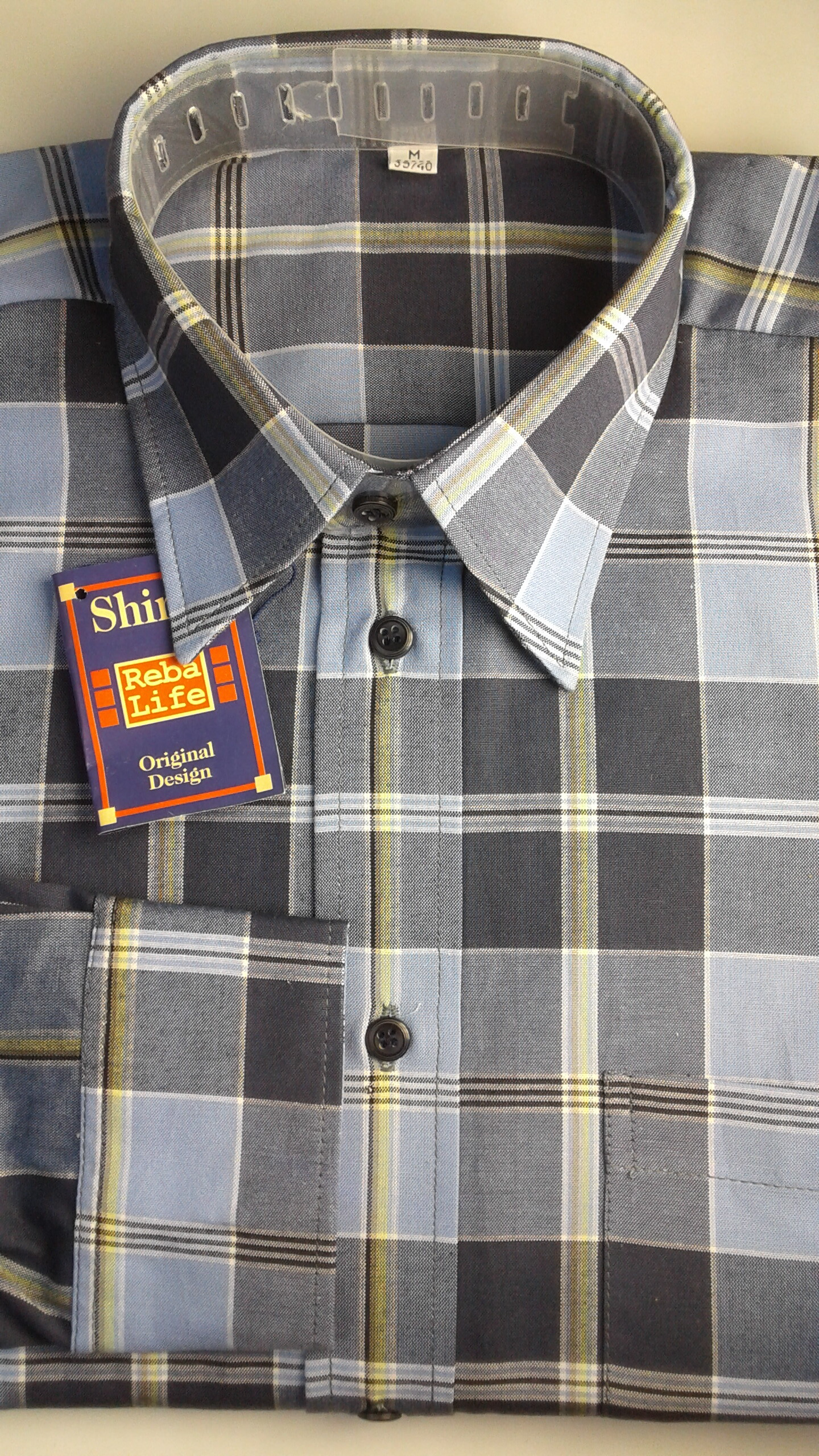 Overhemd 100 % katoen, geweven ruit, kleurecht. Niet getailleerd en met borstzak. Bovenwijdte/taillewijdte 122 cm.