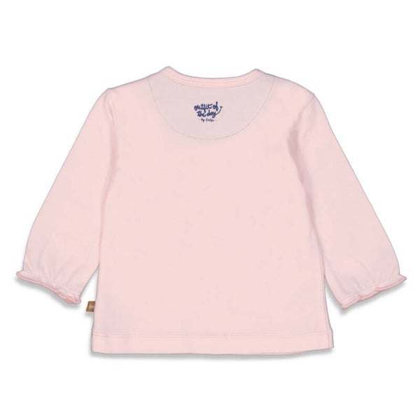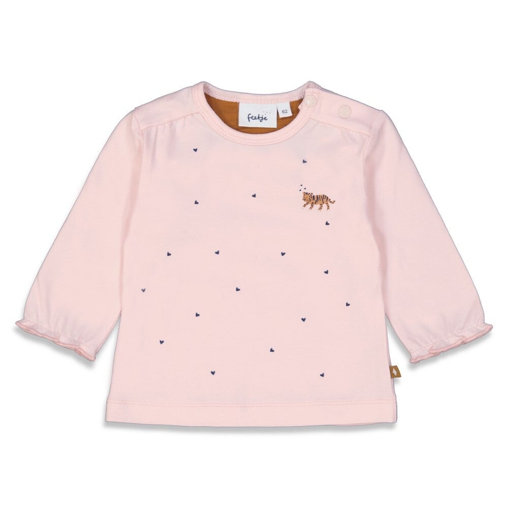 Feetje baby T-shirt lange mouw met kleine hartjes print en tijger.. ronde hals en sluitingop de schouder d.m.v. 2 drukknopen.