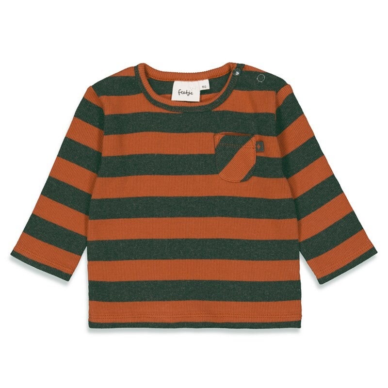 Feetje shirt rib tricot 78 % biologische katoen 20 % polyester 2 % elastaan. ronde hals met 2 drukknoopjes als sluiting op de schouder, zakje op het voorpand